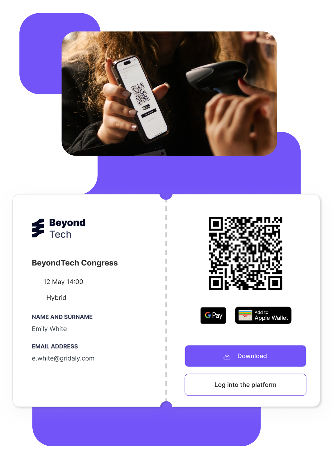 Wysyłasz bilety QR, a uczestnicy mają je zawsze pod ręką. Skanujesz w 15 sekund